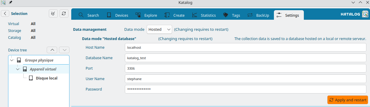 - The database must already exist on the server (Katalog will create the required tables automatically).